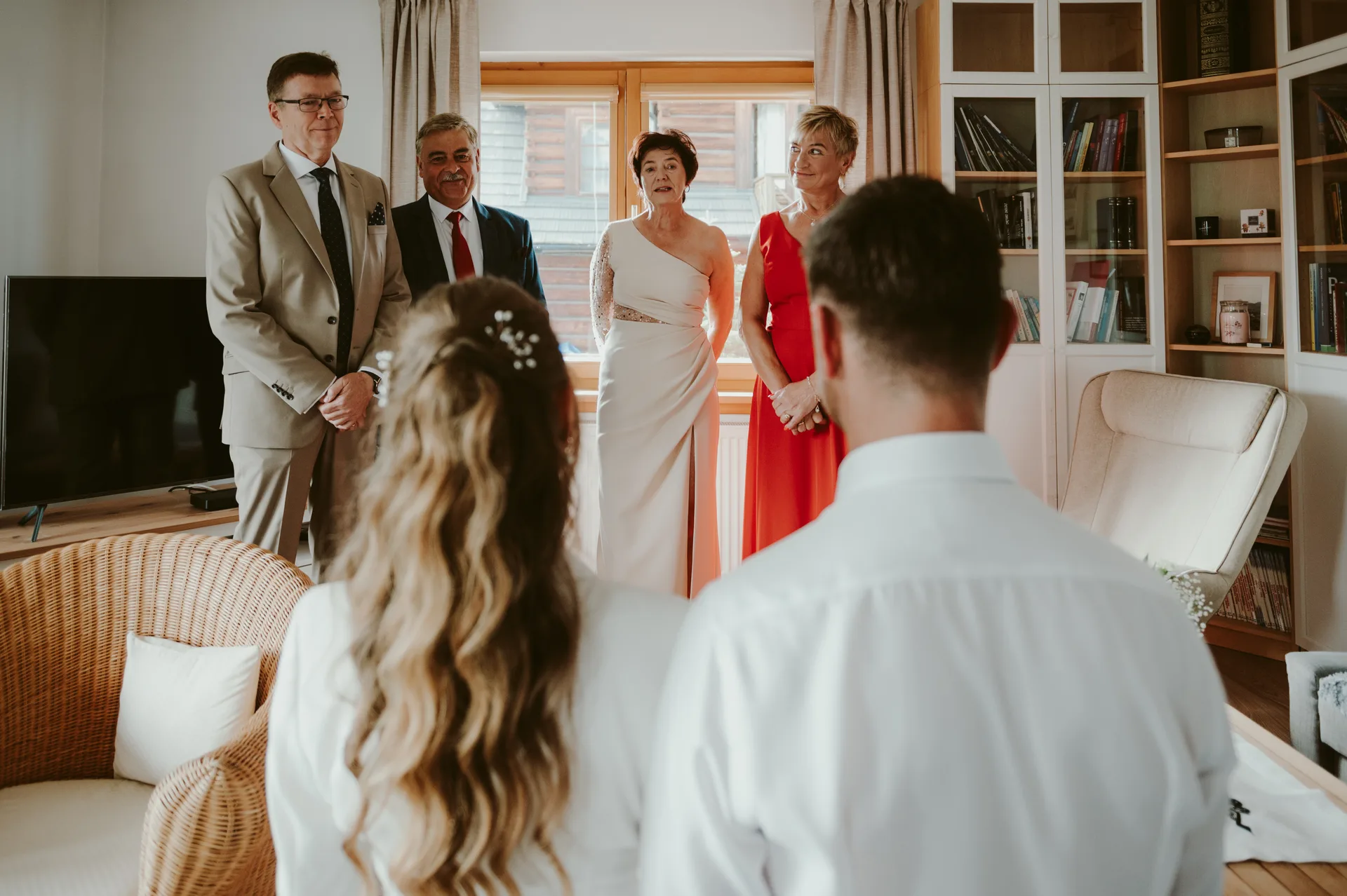 Patrycja i Adrian to wspaniała para, pełna marzeń i pasji! Od razu poczułam, że nadajemy na tych samych falach. Jednym z ich marzeń był ślub pod ukochanymi Tatrami w małym, drewnianym kościółku, w gronie najbliżej rodziny i bliskich przyjaciół.  Od początku jak tylko pojawiłam się na przygotowaniach u młodych dało się wyczuć atmosferę szczerego wsparcia, radości ze ślubu oraz miłości i nie mam tu na myśli tylko Patrycji i Adriana, ale ich przyjaciół, więc od razu miałam pewność, że będę pracować tego dnia dla wspaniałych osób. Szybko się z resztą o tym przekonałam.  Było totalnie na luzie – tak jak wymarzyli sobie Państwo Młodzi.